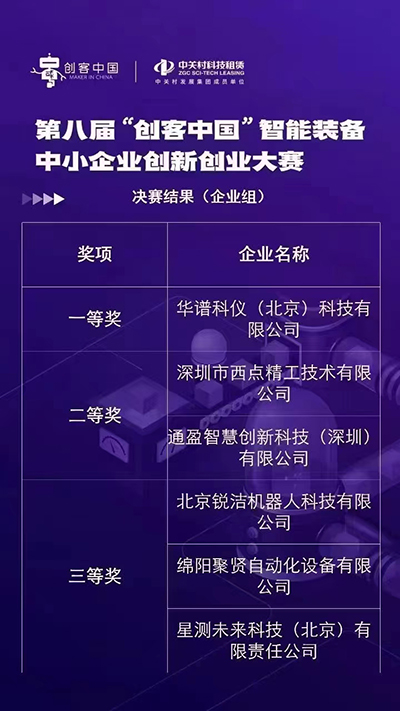 2023年10月,第八屆“創客中國”智能裝備中小企業創新創業大賽在北京召開,華譜科儀榮獲企業組一等獎。