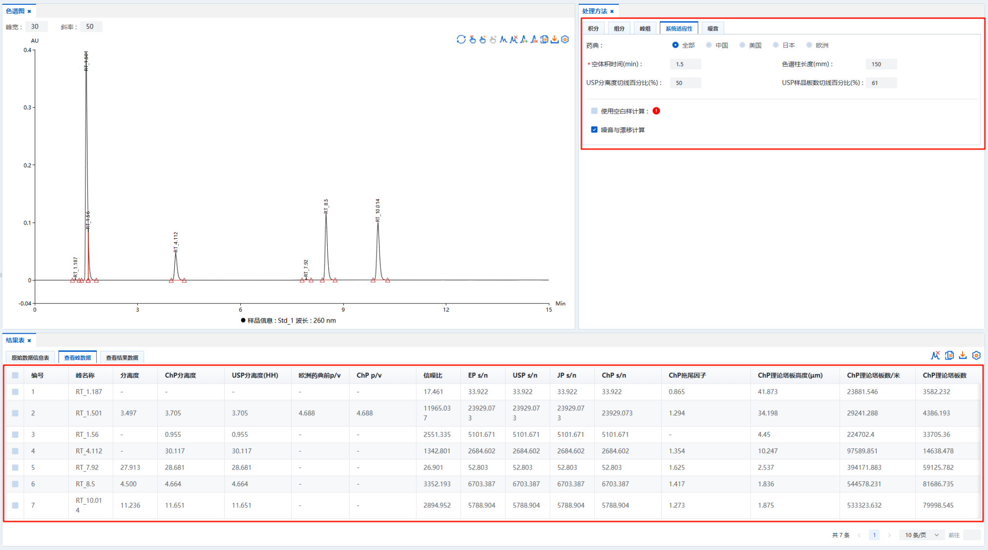 華譜科儀Chromloong應對新版藥典中關于系統適用性修訂部分的設置及結果: