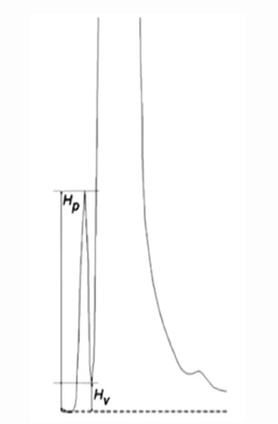Hv為小峰和大峰間曲線最低點平行外推基線的高度。